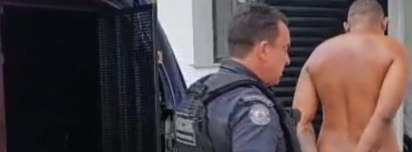 O suspeito foi localizado em via pública e, após abordagem, os agentes confirmaram a existência de um mandado de prisão em aberto.
