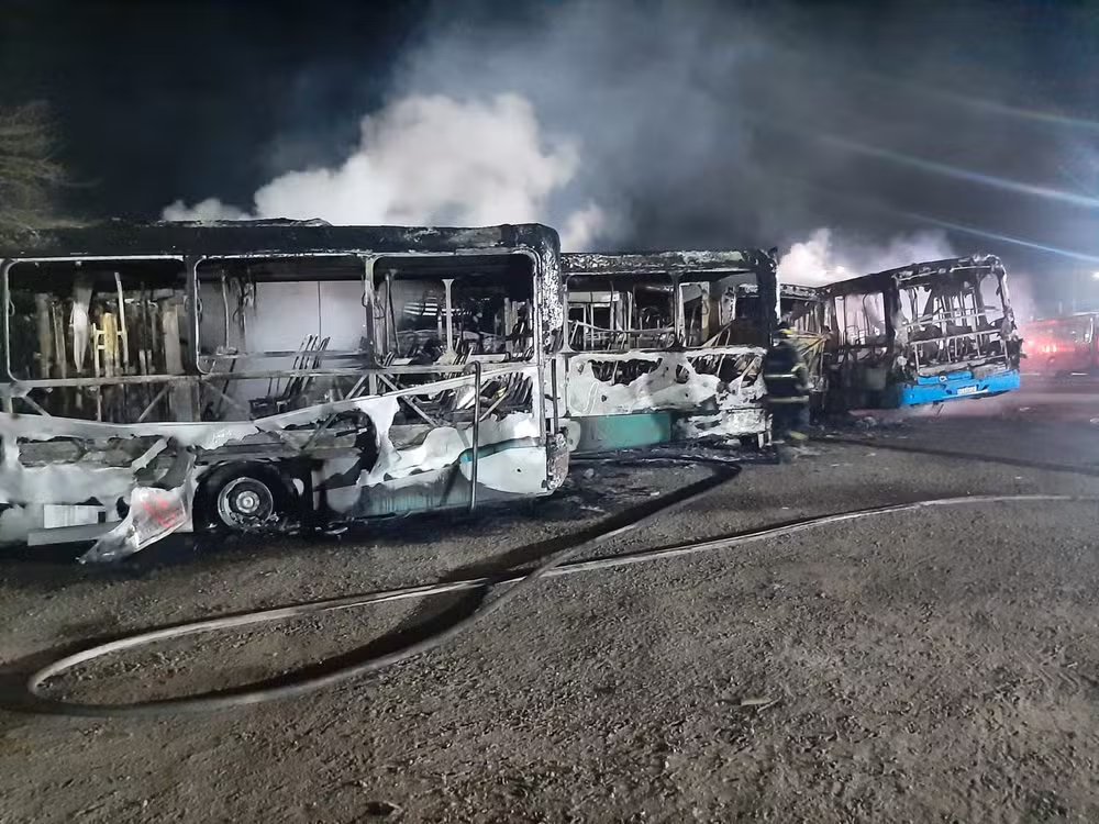 Uma garagem de ônibus foi atingida por um incêndio na madrugada desta segunda-feira (19), em Caraguatatuba. O incêndio consumiu a garagem da Soul Caraguá, na zona sul de Caraguatatuba, destruindo completamente 17 ônibus em poucas horas.