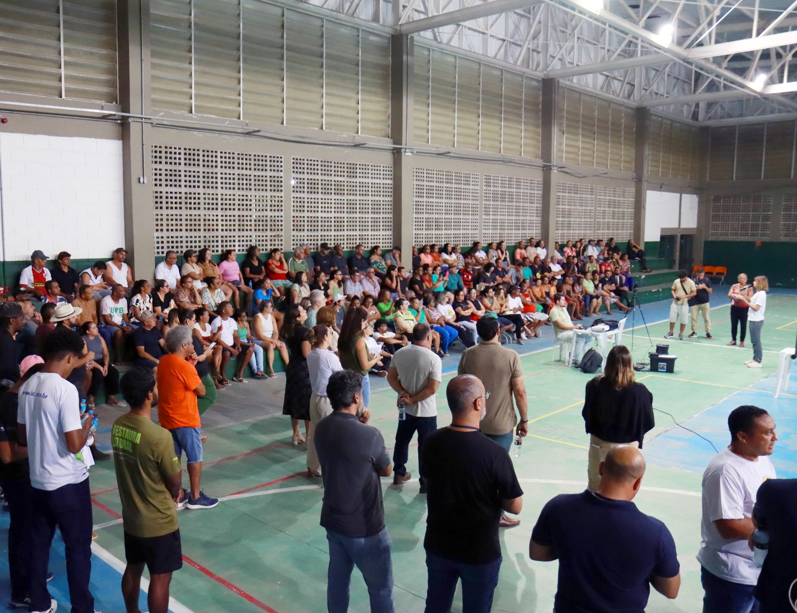 Reunião realizada na noite de quarta-feira (3/12) levou mais de 150 pessoas ao no Instituto Verdescola, na Vila Sahy, onde foi feita a apresentação do Plano de Cadastramento Socioeconômico, etapa fundamental do processo de regularização fundiária (Reurb).