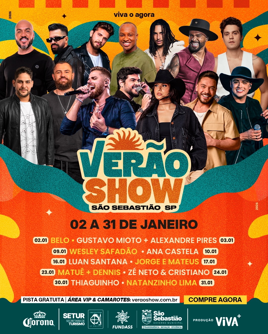Entre os nomes confirmados estão Jorge & Mateus, Ana Castela, Luan Santana e Wesley Safadão, atraindo expectativa de grande público.