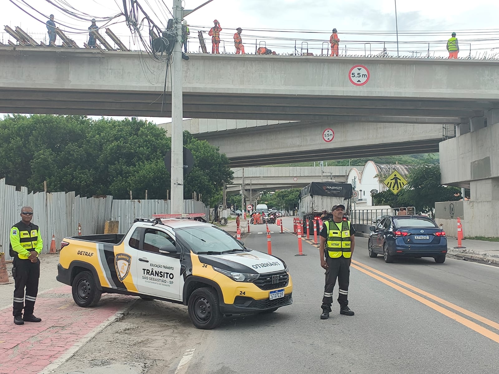 Paralelamente ao avanço das obras, medidas operacionais de trânsito vêm sendo adotadas para garantir a segurança viária durante as intervenções. O Departamento de Trânsito da Secretaria de Segurança Urbana (Segur) iniciou, nesta terça-feira (3/2), a operação Pare e Siga na Avenida Engenheiro Remo da Silva, que liga o Centro ao Contorno Sul da Tamoios, e também na via que conecta a Costa Sul ao Centro, para a instalação de pré-moldados que compõem a base do viaduto.