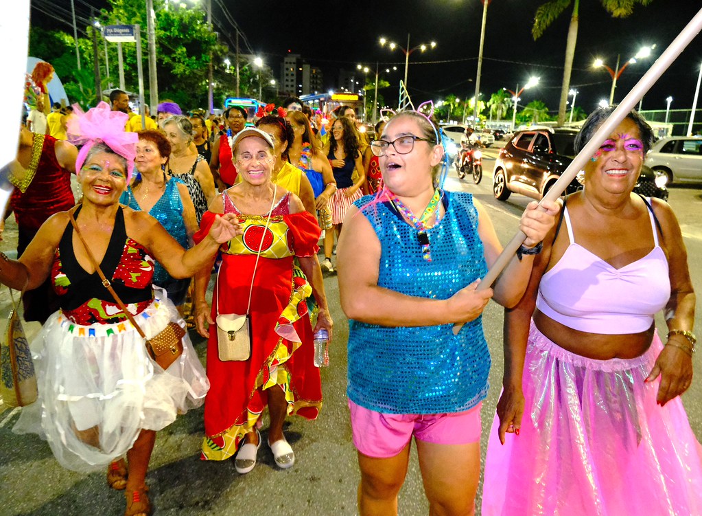 A concentração inicia às 19h30, na Praça Dr. Diógenes Ribeiro de Lima, conhecida como Praça do Artesão. Ao som dos músicos da Dixieland Folia, o cortejo, que está previsto para começar às 20h, segue pela Avenida da Praia sentido à Praça Dr. Cândido Motta, onde ocorre a abertura oficial da programação com o Grito de Carnaval, resgatando o espírito das festas tradicionais, com muita descontração e ambiente familiar.